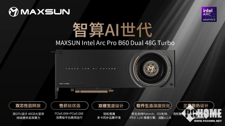 铭瑄宣布推出Intel Arc Pro B60 Dual 48G Turbo显卡,采用了双GPU设计。