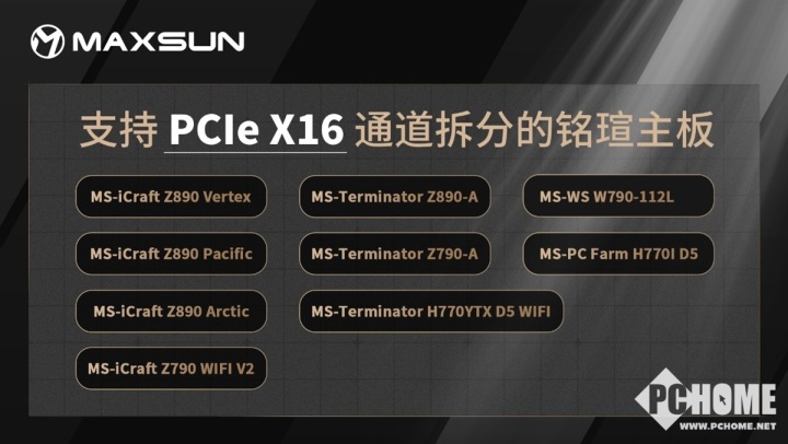 与普通的显卡不同,这款英特尔工作站显卡采用的是PCIe 5.0 x8 + PCIe 5.0 x8接口设计,需要主板支持PCIe x16通道拆分为双x8通道,让用户可以在消费级平台上实现高效运行,大幅降低部署大模型的整机成本。铭瑄旗下既有多款主板支持PCIe x16通道拆分,助力显卡双芯性能满血释放。