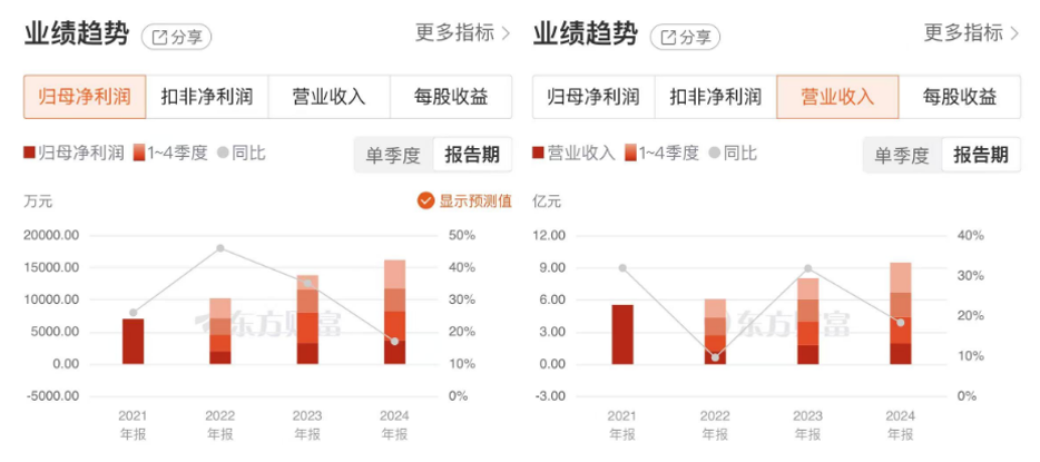 核心产品的稳健表现,驱动公司业绩持续增长。2021年至2024年,丰茂股份实现营收分别为5.55亿元、6.08亿元、8.02亿元、9.49亿元;归母净利润分别为7002万元、1.02亿元、1.38亿元、1.62亿元。可以看出,丰茂股份的营收和净利润连续三年保持增长。