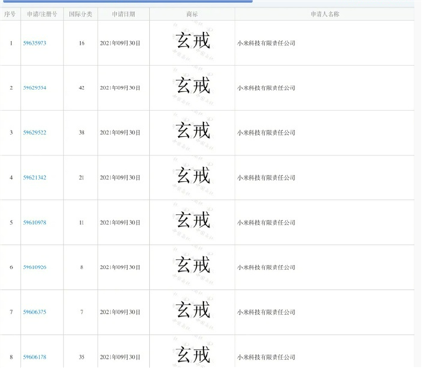 如果仔细看的话,从2021年9月30日小米就已为玄戒申请注册商标。