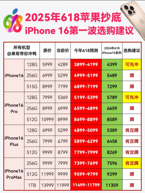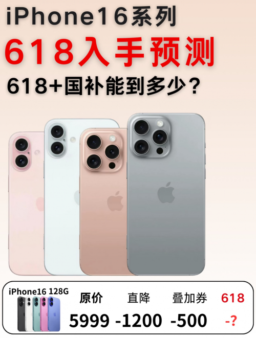 iPhone16全系列618抄底选购建议前几天苹果iPhone 16 Pro也支持国补了,在618来临之前突降500,很多宝子以为能抄底冲了~其实它的自然降价大概只有400左右,远不及去年618时iPhone 15Pro降的多,所以想多省几百的不要盲目冲,看完这篇攻略你就懂了。