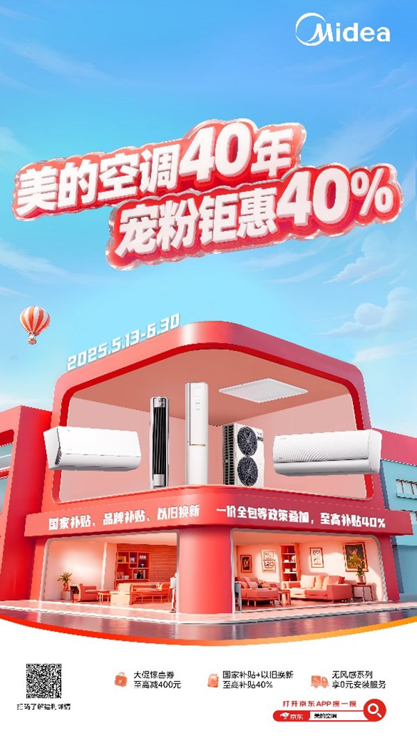 此次618恰逢美的空调40周年庆,叠加国家补贴政策,推出至高40%的补贴优惠,让消费者享受一价全包的省心体验。