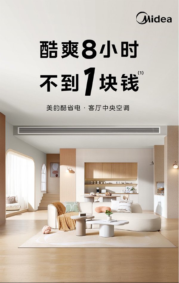 一到夏天,电费账单就成了 “扎心刺客”,“开空调心疼,不开空调难受” 的纠结,困扰着无数家庭。高昂的用电成本,让清凉成了一种负担。美的酷省电系列主打节能与智能化,一级能效搭配iECO节能模式,一键省电,APF值最高4.9,比国标还节能28%,全直流变频科技实现30秒速冷、60秒速热,-35~65℃宽温域稳定运行。智能操控方面支持WiFi线控器、语音、APP多方式控制,还能实时查看用电量,让节能看得见,成为客厅中央空调的节能优选。