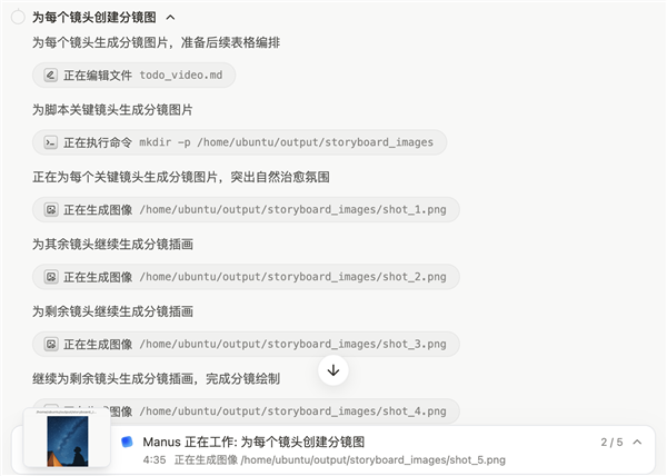 并且,由于我要求画出分镜,Manus还生成了png图片,看起来很未来可期。