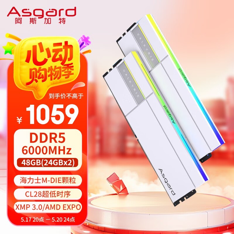 阿斯加特48GB DDR5内存条京东优惠价1013元