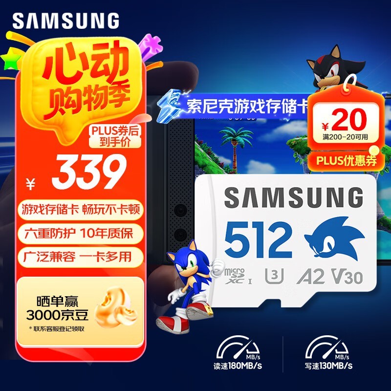 三星512GB TF卡优惠,到手价281元