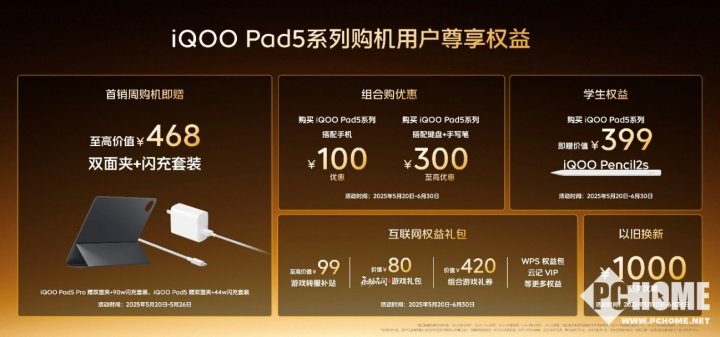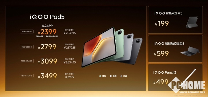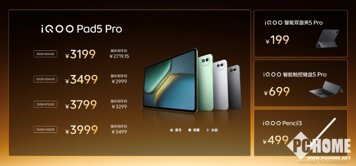 另外还有iQOO Pad5系列平板,该机提供“曼岛”、“灰晶”和“银翼”三种配色,iQOO Pad5 Pro提供 8GB+256GB、12GB+256GB、12GB+512GB 和 16GB+512GB 四种存储组合可选,到手价 3199 元起,iQOO Pad5 提供 8GB+128GB、8GB+256GB、12GB+256GB 和 16GB+512GB 四种存储组合可选,到手价 2399 元起;iQOO WATCH 5 到手价 799 元起;iQOO 磁吸散热背夹 Pro、iQOO TWS Air3和iQOO 33W自带线充电宝到手价分别是199元起、99元起和129元起。各款IoT设备搭配iQOO Neo10 Pro+组合购买还能享受更多优惠。