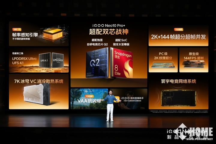 iQOO Neo10 Pro+还使用了自研电竞芯片Q2,能够支持原生级144FPS超帧,并能提供PC级2K纹理超分画质,2K+144FPS超分超帧并发,将带来视效满格、功耗打折的优质体验。如此优秀画质表现,更是让iQOO Neo10 Pro+获得了电竞赛场的青睐,通过KPL比赛用机测试认证,还与《王者荣耀》、《逆水寒》、《暗区突围》、《三角洲行动》、《火影忍者》、《永劫无间手游》等Top 游戏深入合作。