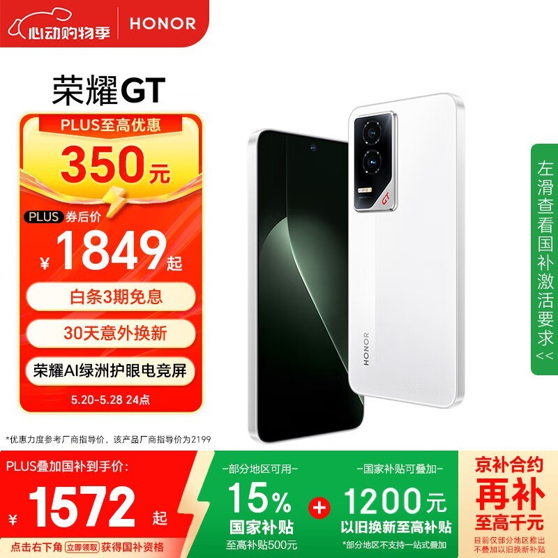 荣耀HONOR GT 5G手机12GB+256GB版京东大促