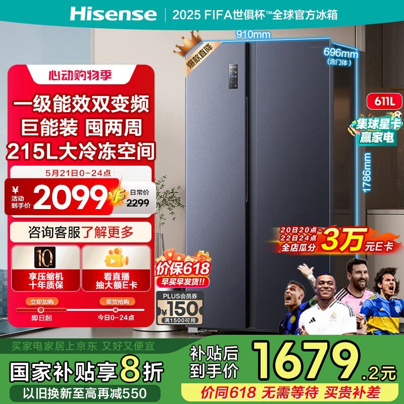 海信Hisense 611L冰箱 多种优惠低至1494元