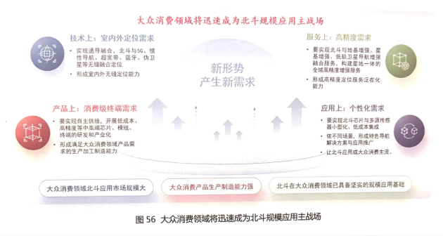 “十四五”时期,我国行业领域的北斗规模应用已经实现重大突破。与之形成鲜明对比的是,大众消费领域的北斗应用虽然潜力巨大,但规模化程度却相对滞后。当前,重点行业领域的北斗应用已形成成熟的技术生态,规模增长逐步趋于平稳,而大众消费领域正成为北斗规模应用的主战场。这一转变的主要原因有三个:一是大众消费市场蕴藏着海量需求。智能手机、新能源汽车、智能穿戴设备,消费级无人机等与位置服务高度相关的产品,用户基数动辄以百万、千万甚至亿级计,远超行业应用规模。二是我国具备强大的制造业基础,从芯片模组到终端设备的全链条生产能力,足以支撑北斗技术大规模集成应用。三是北斗在大众消费领域已形成深厚基础。国内外主流智能手机全面兼容北斗定位系统,搭载北斗三号短报文功能的国产手机年销量突破百万台;北斗三号短报文服务正式开启大众商用试点;多款国产新能源汽车集成北斗高精度定位与短报文通信功能;车道级导航定位功能更是得到广泛应用。随着行业市场增长渐趋平稳,大众消费市场凭借庞大的用户基数、旺盛的使用需求与成熟的产业配套,正加速成为北斗规模应用的核心增长极。这片蓝海不仅将推动北斗技术走向千家万户,更将重塑北斗产业生态,为其开辟广阔的发展新空间。华大北斗在共享出行、智能手机、智能穿戴设备、智能驾驶等大众消费领域长期耕耘,正是瞄准了这一北斗规模应用主战场的战略布局。