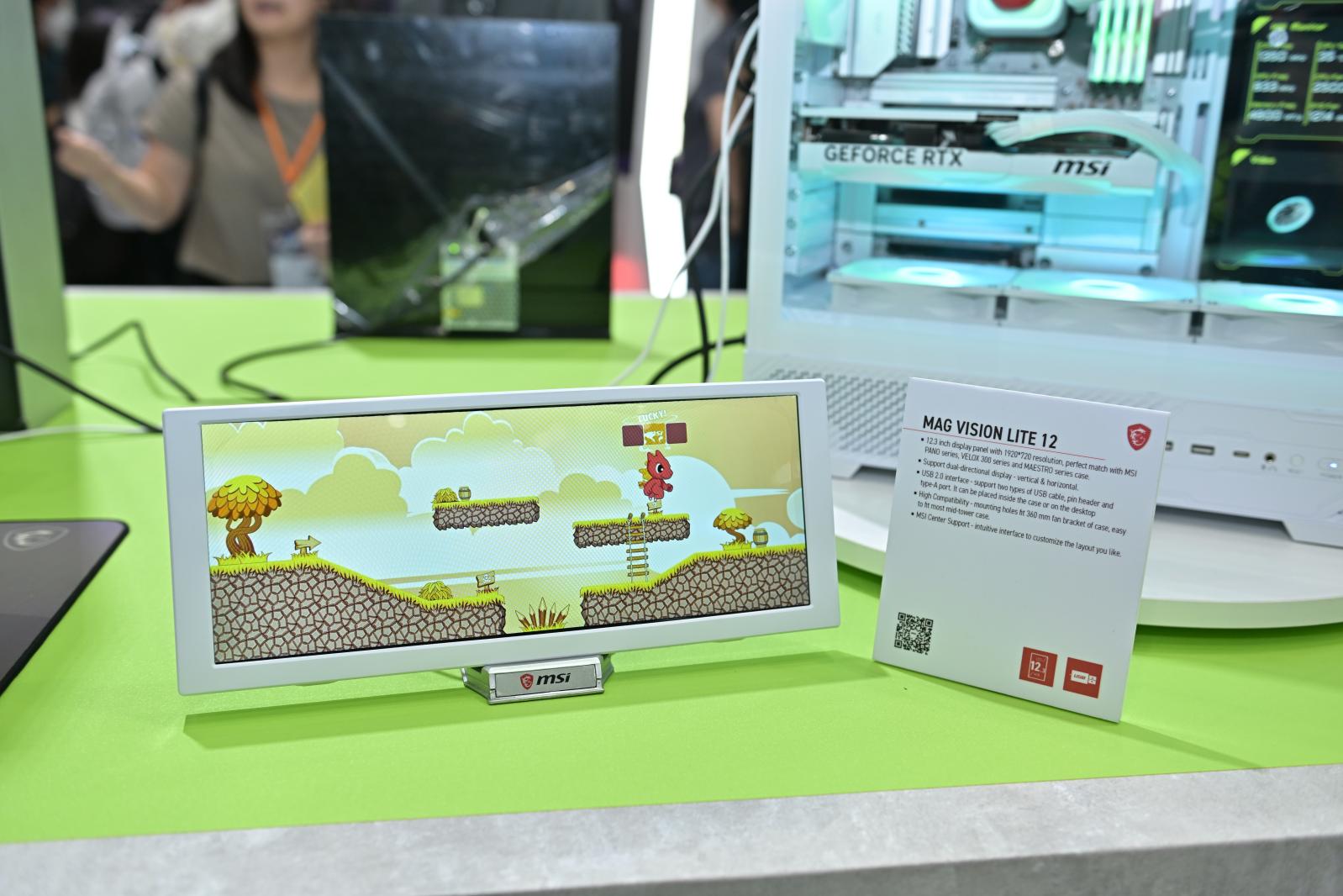 MAG VISION LITE 12 是一款面板配件,可为用户的DIY主机增光添彩。拥有分辨率为 1920×720 像素的12.3 英寸的显示屏,支持微星 PANO 系列、VELOX 300 系列和 MAESTRO 系列机箱。它支持双向,垂直和水平方向,并配有两种类型的 USB 数据线,可灵活调整位置,可置于机箱内部或桌面。MAG VISION LITE 12 支持双模式显示,您可以通过MSI Center进行设置,或者将其作为第二显示器来展示内容。