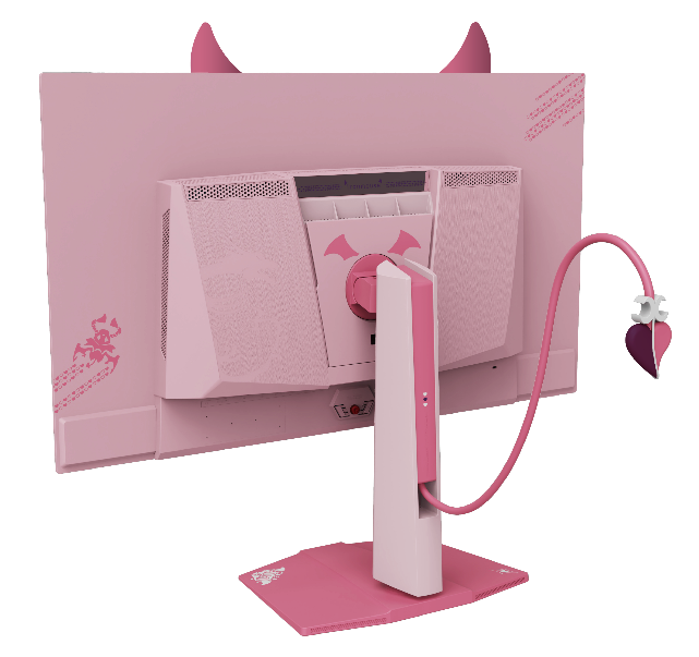 显示器:MPG 321URXW QD-OLED则以简洁的白色边框为底座。其上点缀着柔和的粉色和紫色元素,还有低调的 IRONMOUSE 细节,背面还印有一个俏皮的标志——把古灵精怪展现的淋漓尽致。