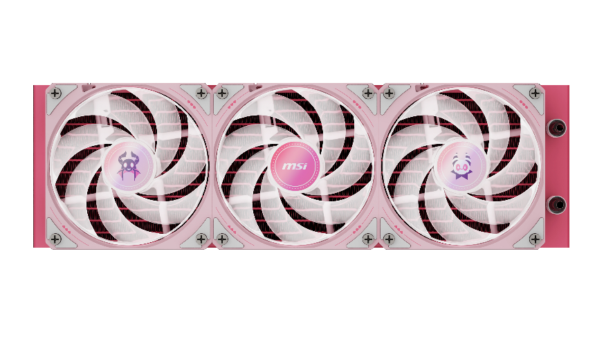 水冷散热器:MAG CORELIQUID A13 360 在泵头上融入了主题风扇贴纸和设计元素,将精致的心形细节与她的恶魔吉祥物相结合,打造出一款既可爱又酷炫的焦点组件。