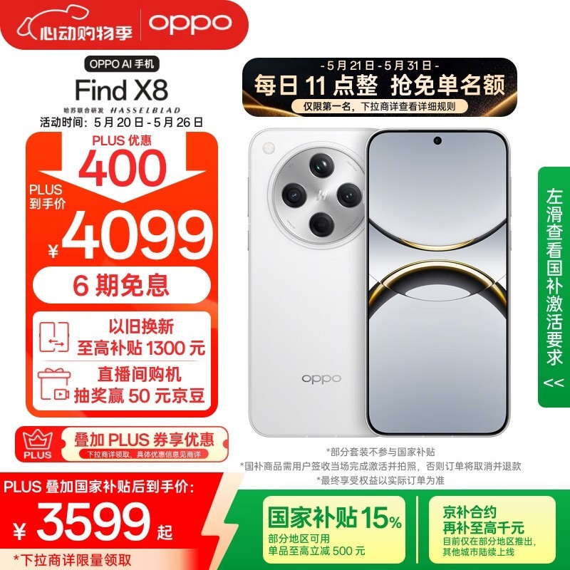 OPPO Find X8 5G手机限时钜惠,4499元直降千元到手3376元