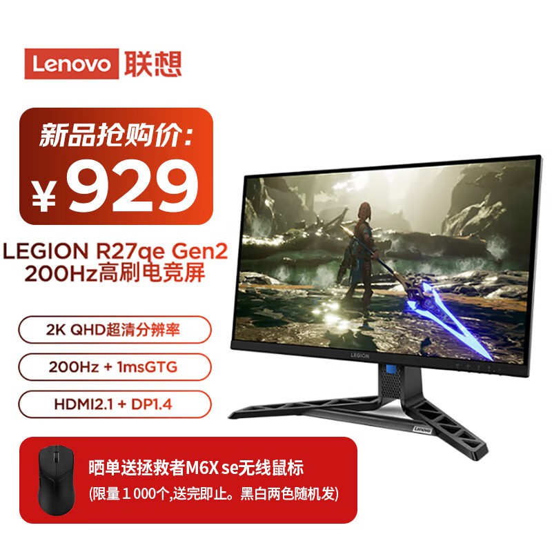 联想27英寸电竞显示器R27qe Gen2限时特惠