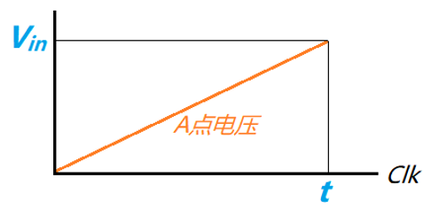 采样开始时,积分器开始积分,同时计数器开始对输入的时钟信号 Clk 计数,假设该时钟频率为 f,积分电流为 Vref/R,经过时间 t 后 A 点电压超过输入信号的电压值,比较器输出从 1 跳变至 0,计数器停止计数,得到计数值 k,通过下方公式计算得到输入电压。