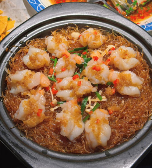 员外油泼湖虾:这道菜的制作过程极具观赏性,端上桌后现场烹制。新鲜的虾仁在锅中逐渐变红,散发着诱人的香气。粉丝吸收了虾的鲜美和汤汁的精华,变得爽滑劲道,与鲜嫩Q弹的虾仁搭配在一起,口感层次丰富,相得益彰。一口粉丝,一口虾仁,让人欲罢不能。