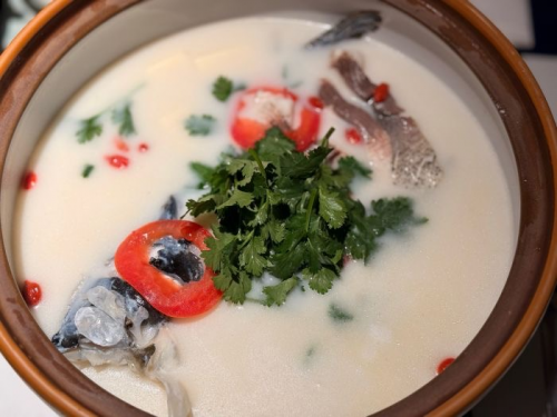 千岛湖浓汤鱼头:这道菜堪称淳圆外的招牌中的招牌。鱼头选用千岛湖新鲜肥美的大鱼头,鱼肉更是鲜嫩无比,经过精心处理和慢火炖煮,汤汁浓郁醇厚,呈诱人的乳白色,每一口鱼汤都饱含着鱼的鲜美和食材的精华,入口即化,鲜香四溢,不仅美味可口,而且营养丰富,富含蛋白质和多种微量元素,是一道老少皆宜的养生佳肴。