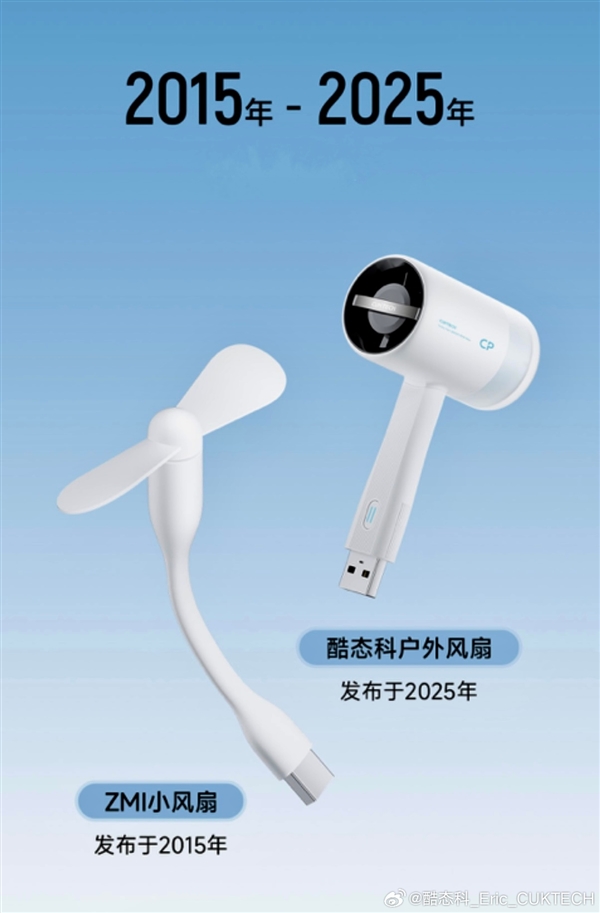 如今十年过去,原紫米团队酷态科发布了“酷态科CP超级户外风扇”,将于5月23日开启预售,到手价69元。