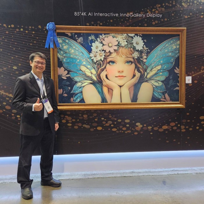 同时,群创展出独创的「85吋4K AI互动数字艺术显示器」亦首次获得SID People’s Choice Award殊荣,该产品采用特殊抗眩光层与抗反射层技术,有效降低环境光反射,实现类似纸张的低反射及高散射效果。此数字艺术显示器更透过AI互动功能,能够依据用户的语音指令,提供创新且互动性丰富的观赏体验。
