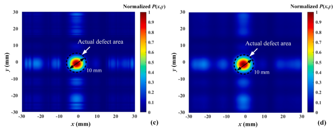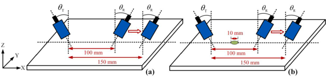 空气耦合超声技术非线性缺陷指数和自适应加权成像算法中,非线性缺陷指数使用兰姆波的相对非线性系数增强检测小尺寸缺陷的能力。考虑到波束宽度,自适应 加权成像算法构造了任意成像点与所有成像点之间的关系扫描路径。此时,成像空间分辨率可以任意设置,消除了取决于扫描步长。