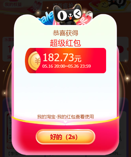 在2025年淘宝天猫618红包领取活动时间内(5月15日~6月18日),每天都可以打开手机淘宝,搜索框内输入红包领取口令【 好运红包7700 】,搜索进入2025年淘宝天猫618官方活动入口,就有机会得最高25888元超级红包、官方立减、购物消费券、88VIP会员等多重活动叠加优惠力度会更大。