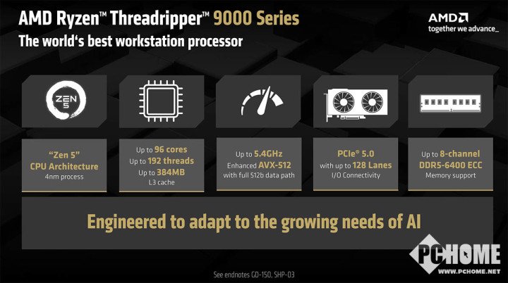 AMD发布了新的Zen 5架构锐龙Threadripper 9000系列处理器,分别面向高端工作站和HEDT平台,都能够提供强劲的多线程性能、优秀的能耗比以及企业级AMD PRO技术。