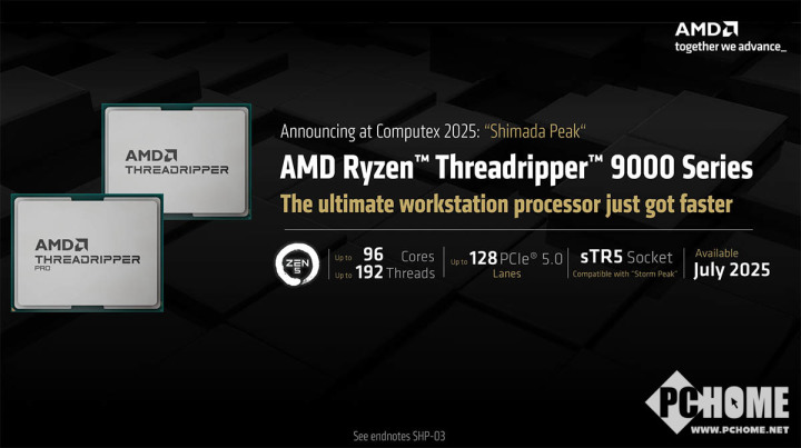 在正在举办的COMPUTEX 2025上,AMD发布了新的Zen 5架构Threadripper PRO 9000 WX和Threadripper 9000系列处理器,分别面向高端工作站和HEDT平台,都能够提供强劲的多线程性能、优秀的能耗比以及企业级AMD PRO技术,助力专业人士更快地将复杂的愿景变为现实。