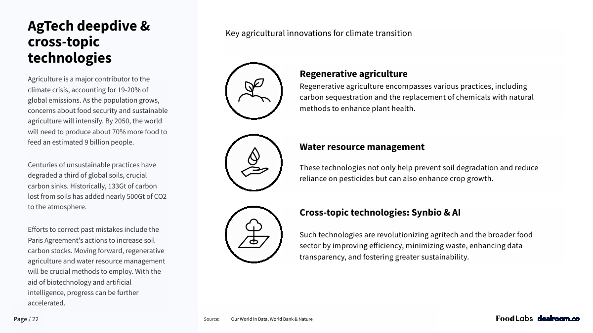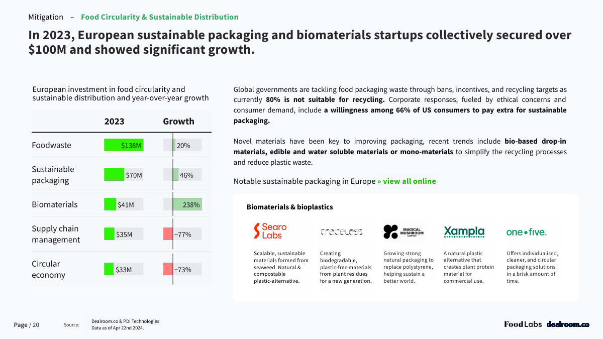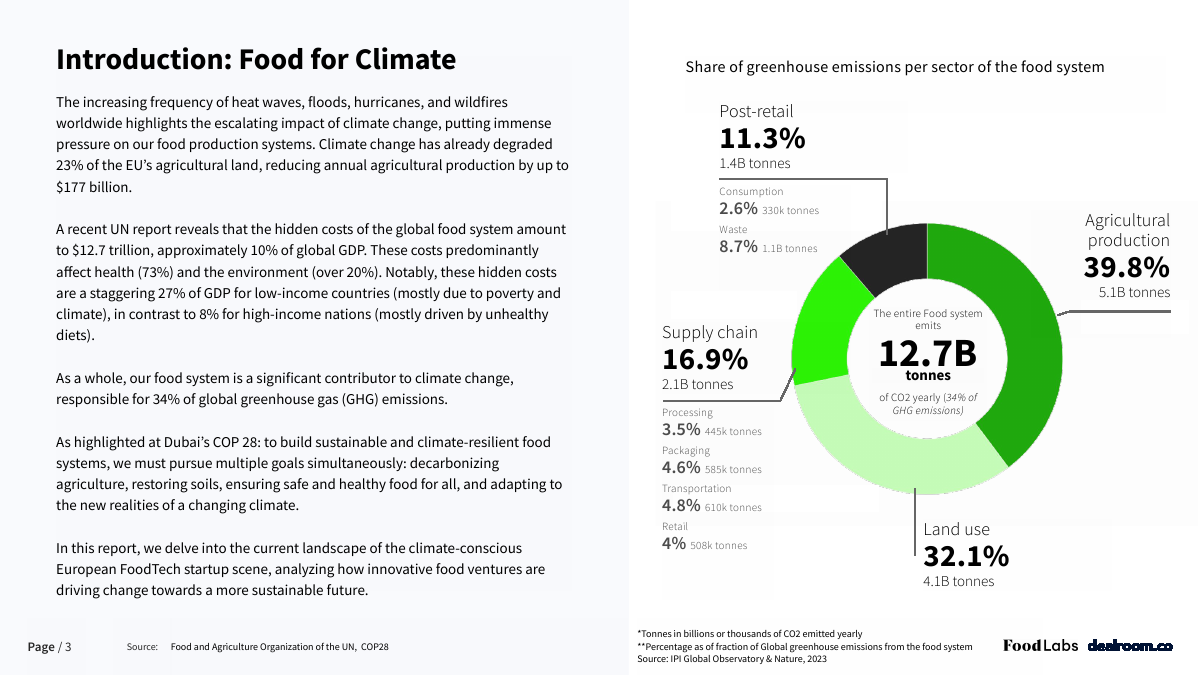 在这份报告中,Dealroom深入研究了气候意识强的欧洲食品科技创业公司的现状,分析了创新食品企业如何推动变革,走向更可持续的未来。