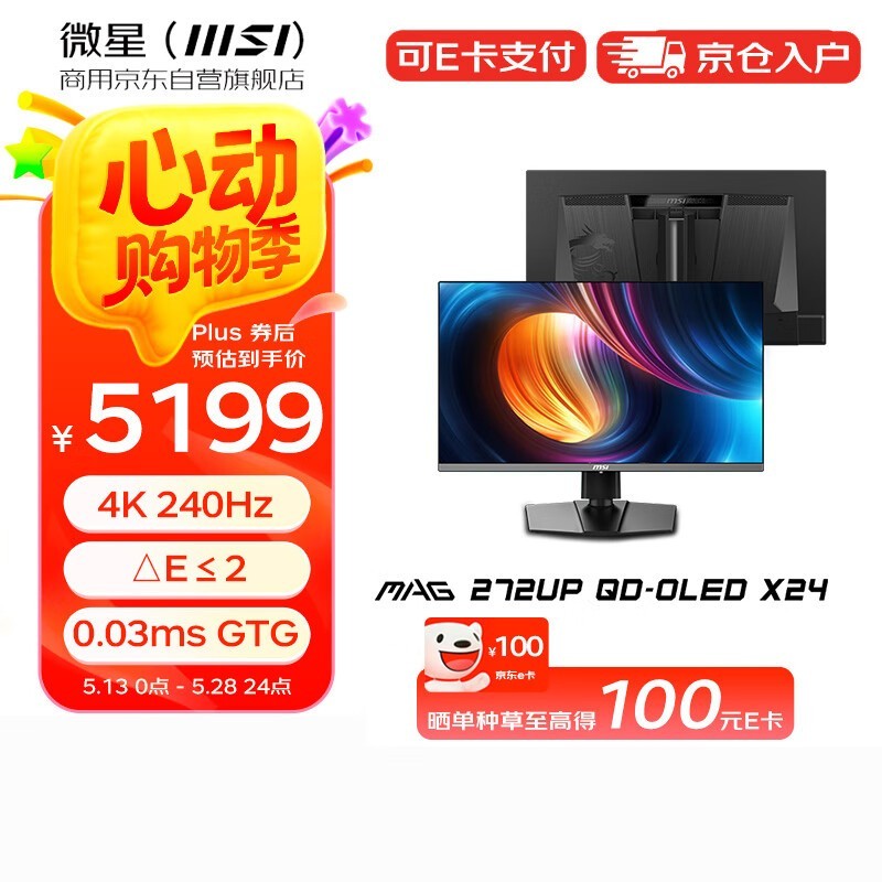 微星MAG 272UP QD-OLED X24流光显示器特惠5071元