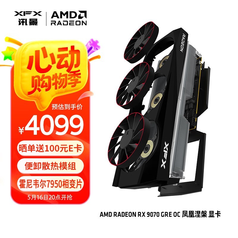 讯景RX 9070 GRE凤凰涅槃显卡限时特惠