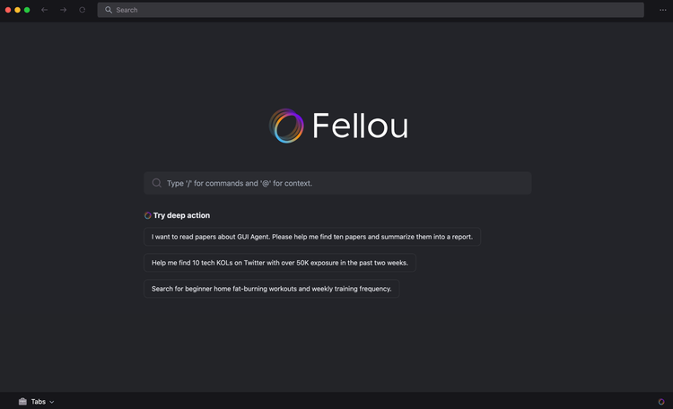 如果说Dia和它背后的公司还披着一些“文艺”的外衣,那Fellou就显得更“工科直男”一些,这两个产品在理念上有些相似之处,而Fellou在产品实现上甚至更进一步,打出“世界首款代理式浏览器 (Agentic Browser)”旗号。它的核心概念是“代理式深度行动 (Agentic Deep Action)”。这话听起来比 Dia 的“全新环境”更“技术流”一些,但内核如出一辙:让浏览器更主动、更深度地介入你的工作流。