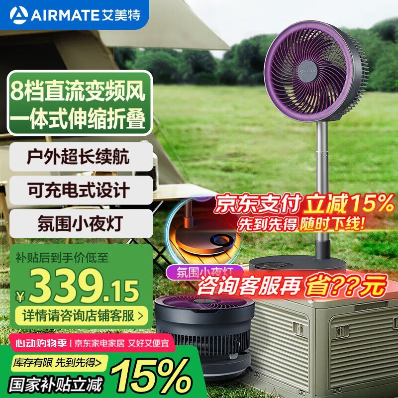 艾美特伸缩折叠空气循环扇优惠价248元