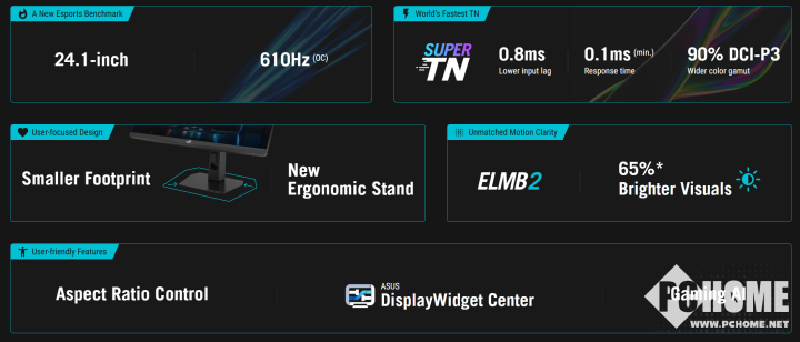ROG Strix Ace XG248QSG采用24.1英寸1920x1080分辨率Super TN面板,拥有原生600Hz刷新率,超频后可提升至610Hz,为游戏速度树立了全新标杆。该显示器还搭载华硕GameFast技术,带来0.1ms的响应时间和仅0.8ms的输入延迟。此外,该显示器还支持G-SYNC和FreeSync Premium,有效消除画面撕裂和延迟。