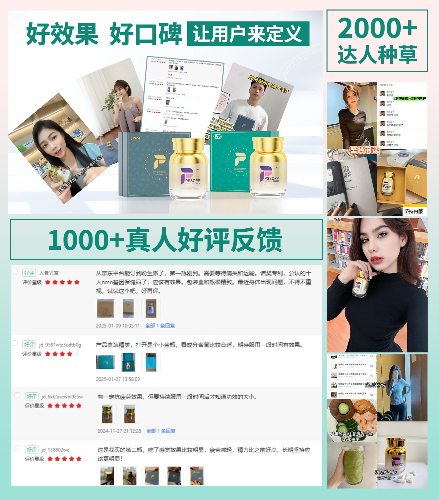 C9NMN盼生派市场表现亮眼,全球销量占比 69.8%,京东【PSSOPP海外官方旗舰店】店铺评分远超 92.35%的同行,复购率高达 87.95%。2000 +达人种草,1000 +真人好评,100%无差评,口碑与实力并存,成为消费者群体中广泛认可、口口相传的好口碑、效果最佳体感最好的NMN产品。