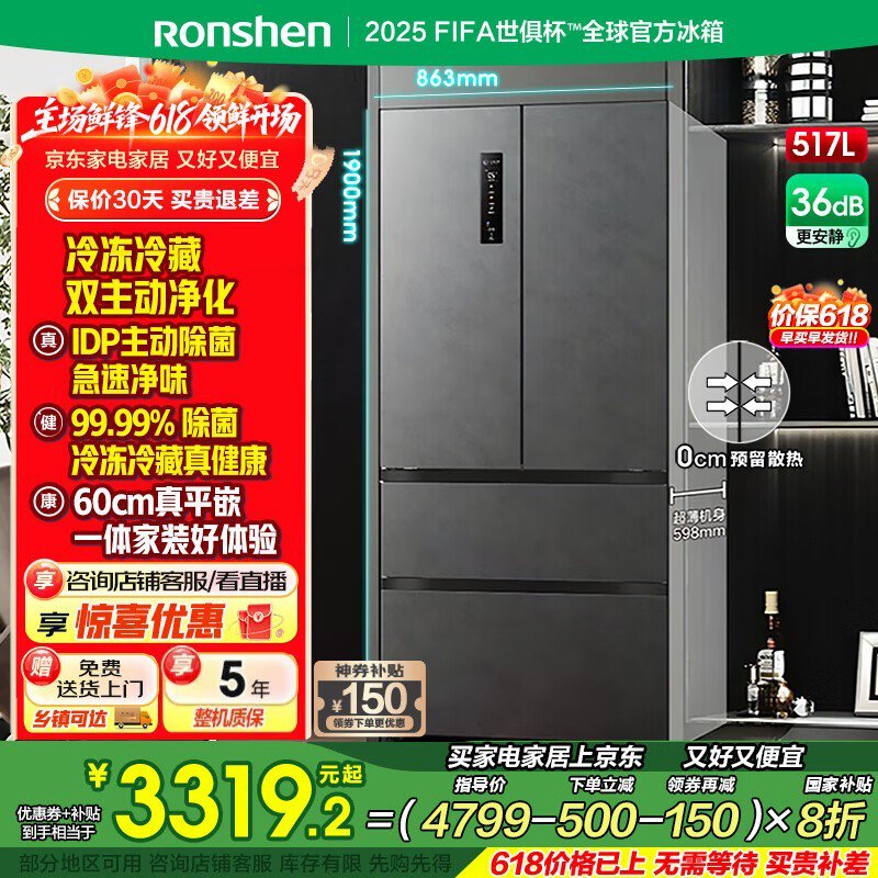 容声517升法式多门冰箱限时特惠,多重优惠价低至2853元
