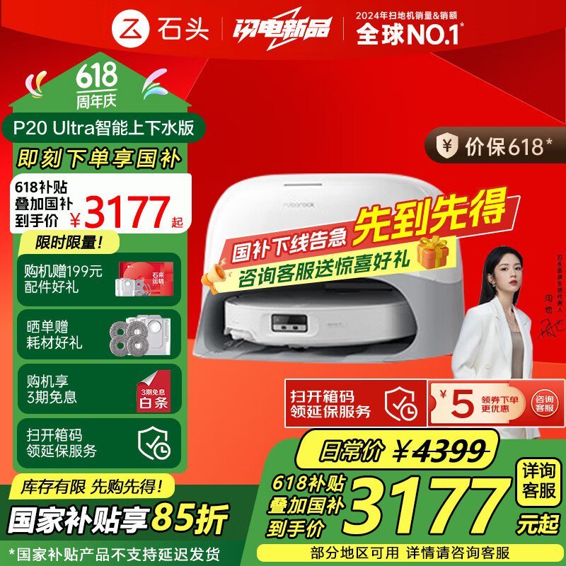 石头Roborock P20 Ultra扫拖一体机限时特惠!