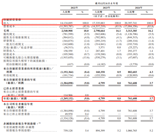 利润方面,2022年京东工业净亏损12.69亿元。2023年,京东工实现扭亏为盈,年内利润为479.9万元。2024年,公司年内利润升至7.62亿元。