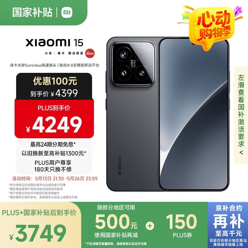 小米Xiaomi 15 5G手机12GB+512GB京东优惠价4249元
