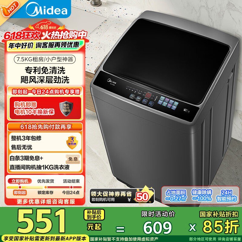 美的波轮洗衣机MB75V36E,活动价低至439元