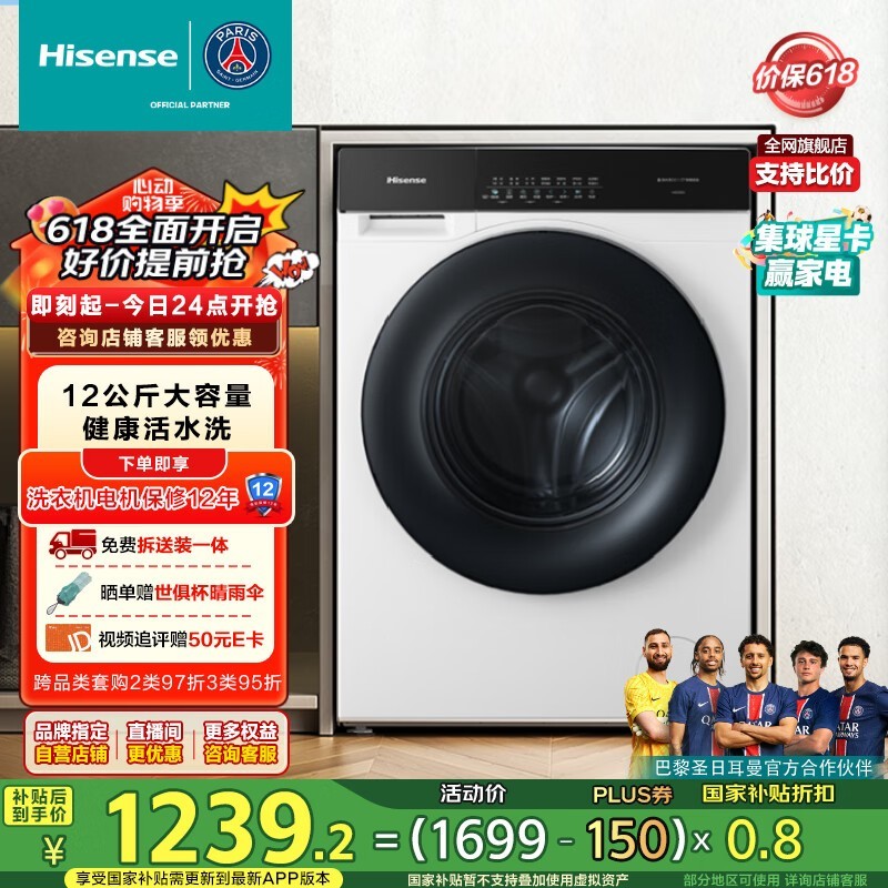 海信滚筒洗衣机12公斤超薄空气洗除菌除螨HG12SE5