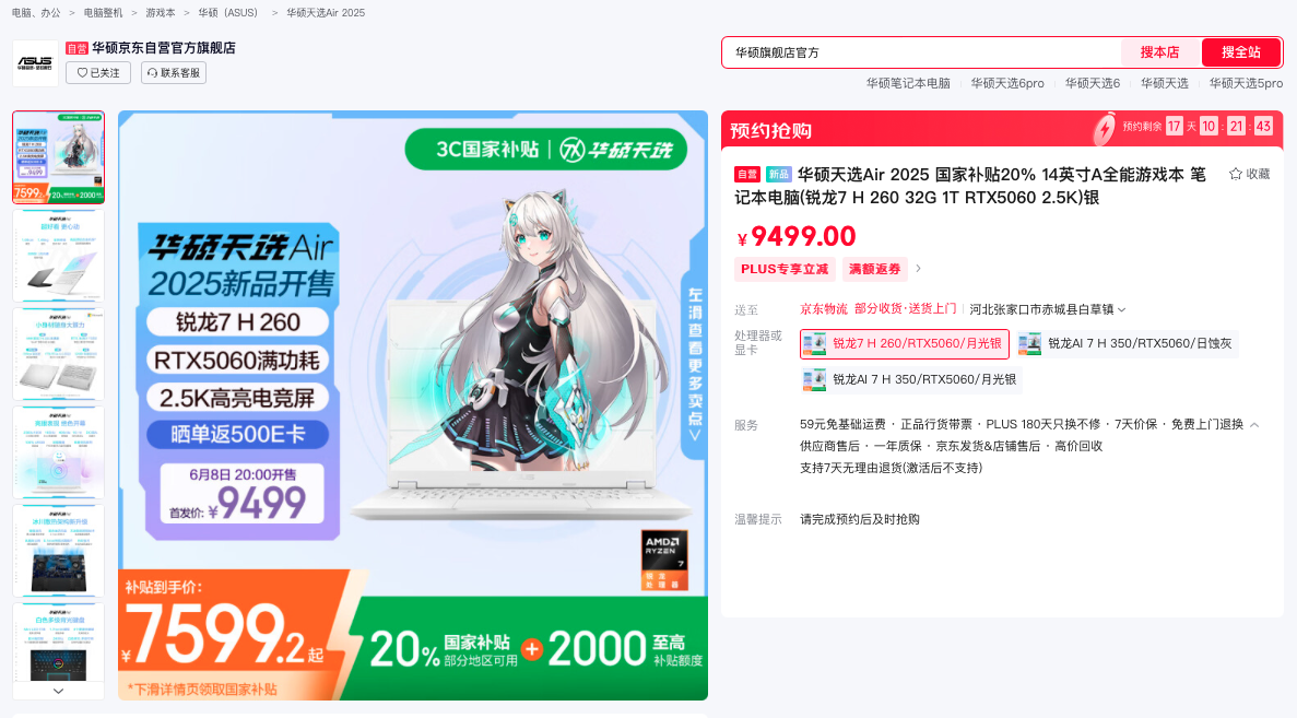 当然了,无论选择哪款产品,都是非常值得的。目前,华硕天选Air 2025已经在华硕京东自营官方旗舰店开启预约,有兴趣的朋友赶快去选购吧。