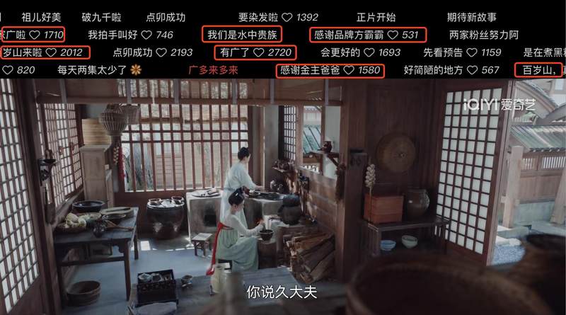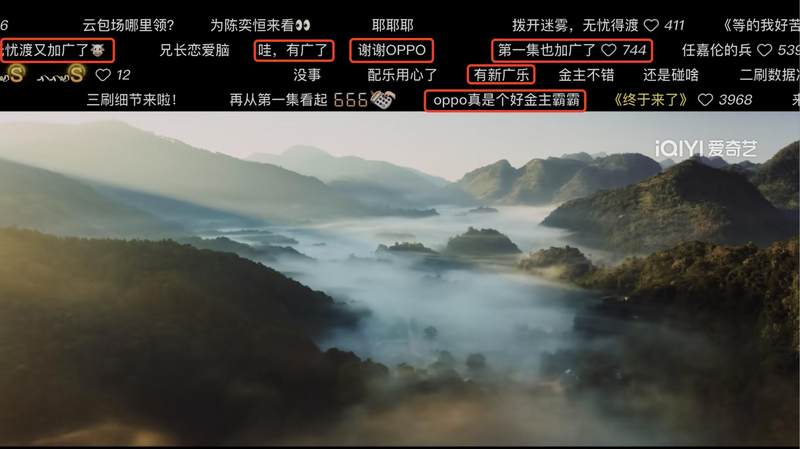相较之下,《无忧渡》能凭借好口碑实现商业化的逆袭也实属难得。第一轮播出时前9集无广,随着口碑热度持续上升,广告投放也一直增加,到播完时已有12个品牌投放,总广告数67个。弹幕中可以看到观众欢迎新品牌入驻支持好剧,经过多年市场教育,观众对于广告投放和好内容之间的正向关系已经有了充分的认知。