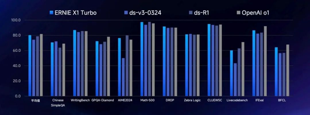 从文心 X1Turbo 的回答来看,它思考解答这个题目的思路非常清晰,能够自主规划,识别图片中的明面信息和隐藏含义,再思考分析,反思每个选项答案的准确性,最后综合给出解题步骤和答案。这在一些权威基准测试中也得到了验证。文心 X1 Turbo 整体效果领先 DeepSeek R1、V3 最新版,略低于 OpenAI o1 满血版。