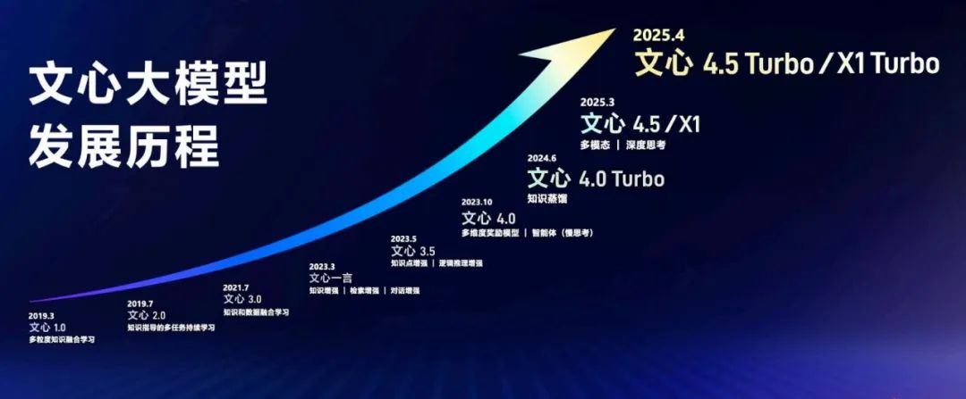 而在这个领域,百度一直是一个不可忽视的力量。从 2019 年发布文心大模型 1.0 至今,文心大模型从知识和数据融合学习,到知识增强、知识点增强,从检索增强、对话增强、逻辑推理增强,到慢思考、多模态的技术演进并非偶然,而是早期技术探索形成的「积淀」持续推动的结果。正是这份「积淀」引领百度打造出超越 GPT-4o 的多模态大模型文心 4.5 Turbo,以及领先 DeepSeek R1、V3 的深度思考模型文心 X1 Turbo。这些技术发展,体现了百度在基础研究上「不变」的坚持与在 AI 快速迭代环境中适时求「变」的进取。