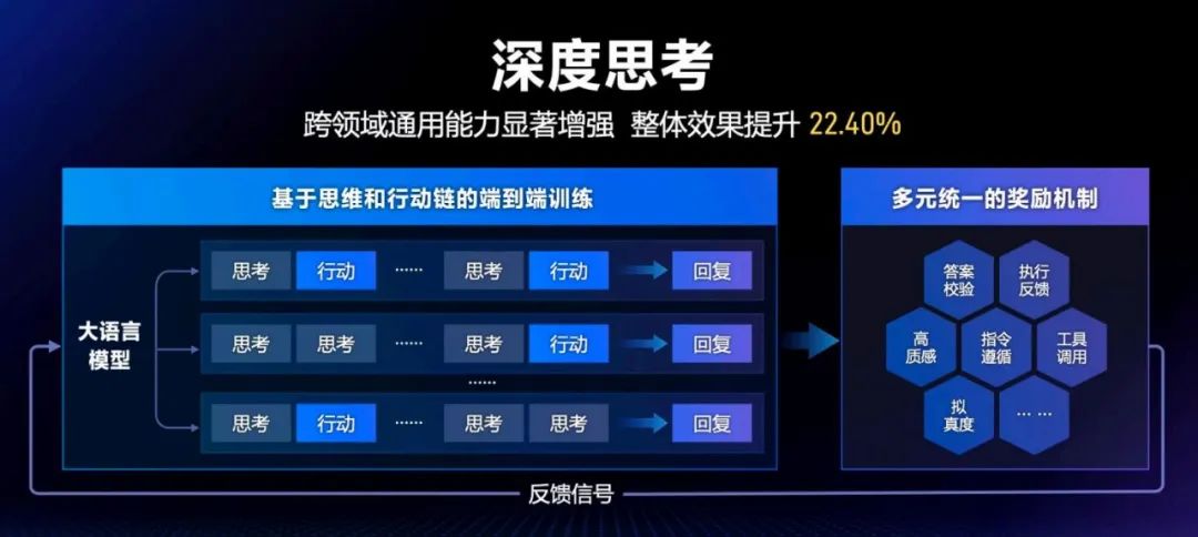 多元统一的奖励机制:融合多种评价标准(如结果正确性、执行反馈、思想深度、指令遵循等)对模型表现进行评判,引导模型向更优方向发展。