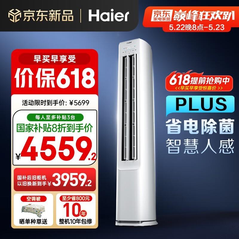 海尔3匹立柜空调,原价6199现低至4090
