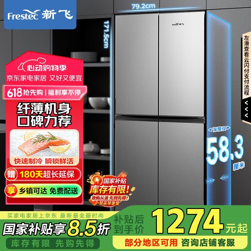 新飞BCD - 382LT8EH冰箱 京东活动价低至1141元