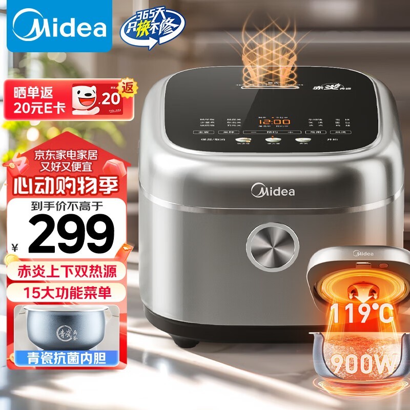 美的电饭煲4L多功能抗菌内胆立体加热限时特惠